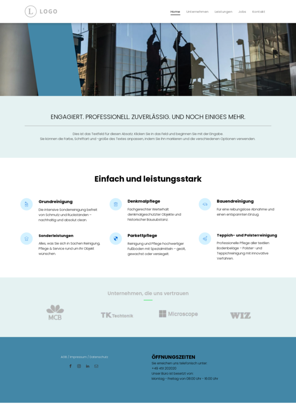 Texts, images, videos, links, and links can be added to your website as required and updated at any time. Optionally you can add a guestbook or a blog and provide your members or interested parties with a contact form or a map of how to find us. If you want certain information to be accessible only to members, you can create password-protected pages. Roles can also be defined - for example, you can define who can only read in your blog and who can comment, edit, write and post articles.
